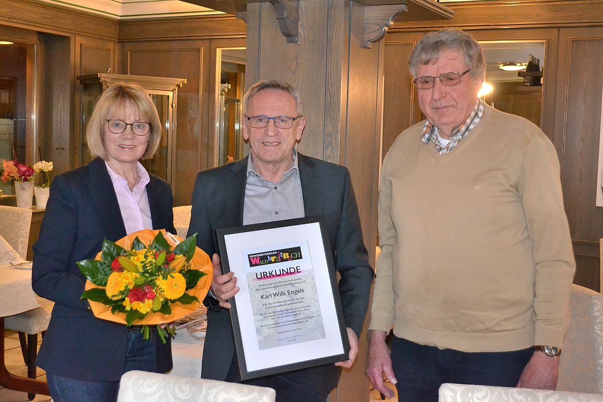 Engels war nicht nur einer der Gründer des Gewerbeverbands 1991, sondern auch der erste Vorsitzende bis 2008. Klaus Peter Paffhausen würdigte die Verdienste von Karl-Willi Engels für den Gewerbeverband, aber auch für Waldbreitbach selbst.