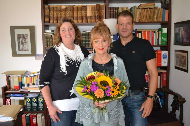 Zum 30jährigen Jubiläum gratulierten jetzt auch die beiden Vorstandsmitglieder des Gewerbeverbands Waldbreitbach Anita Hertling und Aki Hertling. (Foto Bergmann)